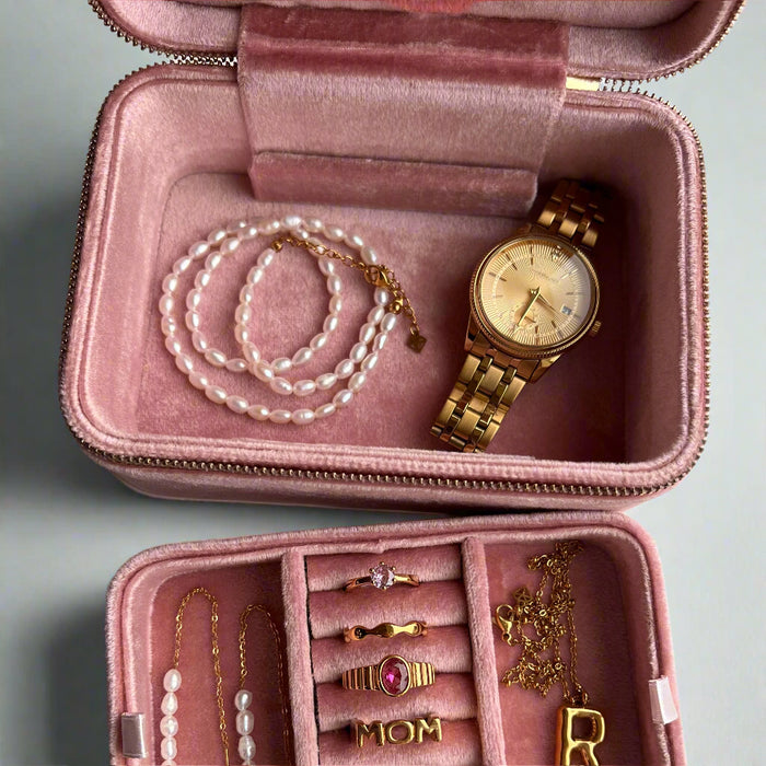 ANNEBRAUNER Pink Velour Smykkeskrin