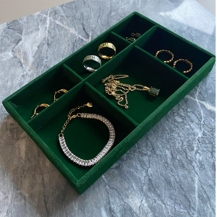 ANNEBRAUNER Velour Smykkebakke 6 Sektioner Green