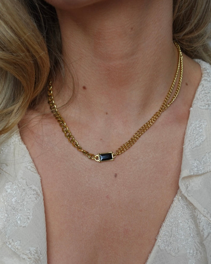ANNEBRAUNER Double Panzer Black Zirconia Halskæde 18K Guldbelagt