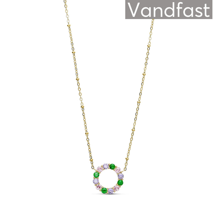ANNEBRAUNER Big Green/Pink Circle Halskæde 18K Guldbelagt