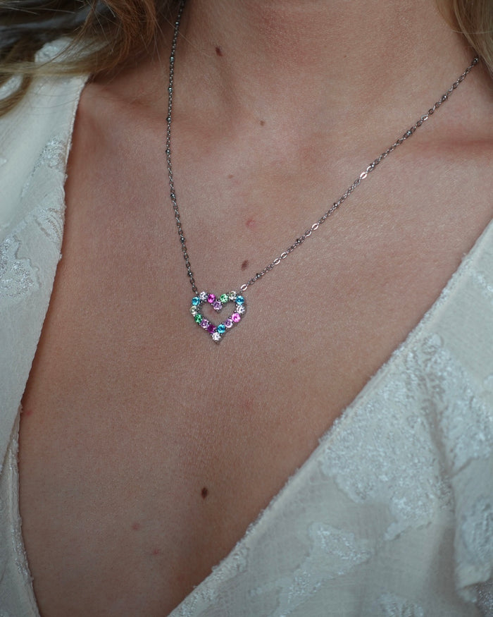 ANNEBRAUNER Big Heart Rose/Violet Halskæde 18K Guldbelagt