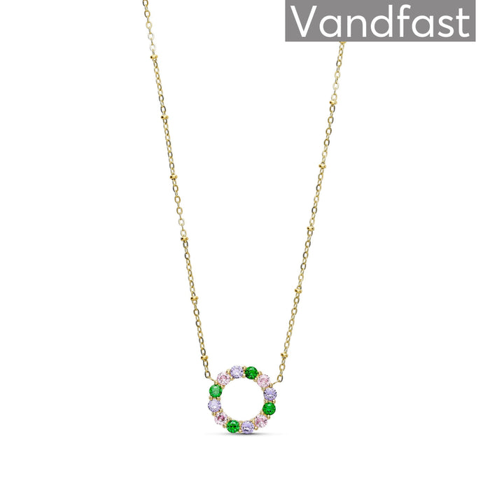 ANNEBRAUNER Big Green/Pink Circle Halskæde 18K Guldbelagt