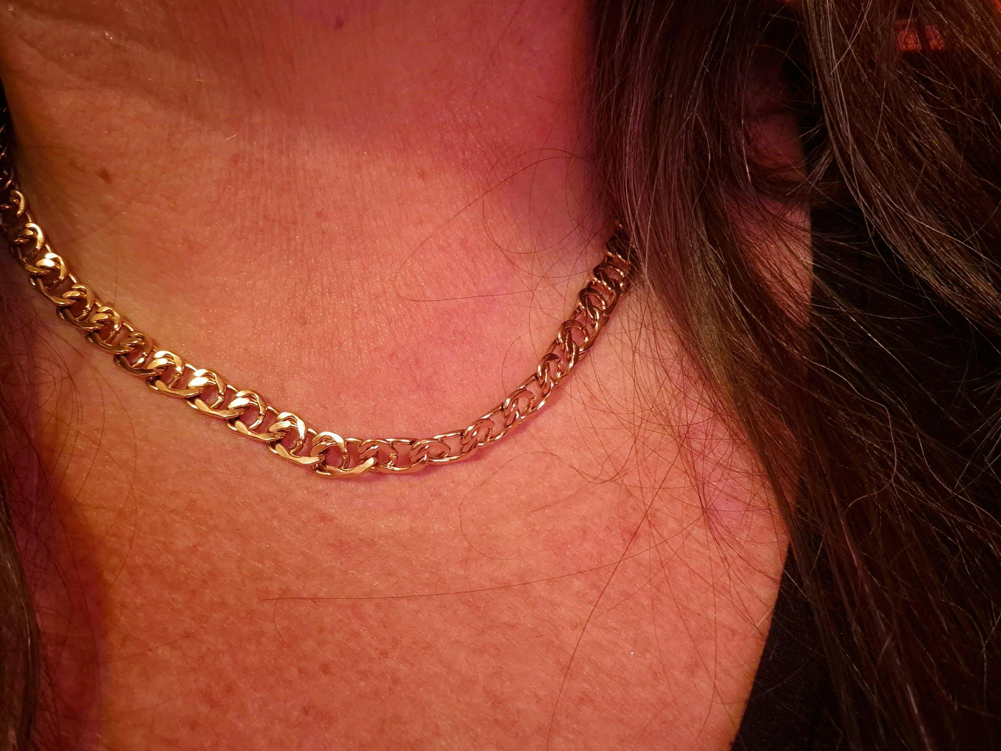 Med sin behagelige pasform og glansfulde overflade er denne halskæde et smykke, du kan bære hver dag - alene som et statement eller kombineret med andre halskæder for et personligt look.