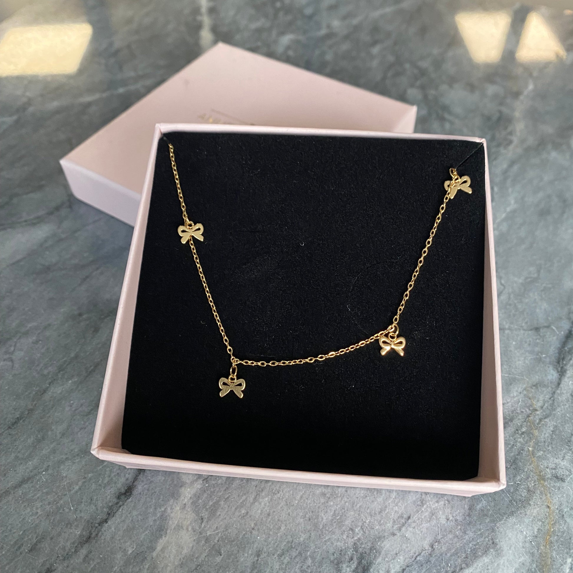 Bow halskæden har fået en 18 karat forgyldning, og kommer i en eksklusiv smykkeæske.