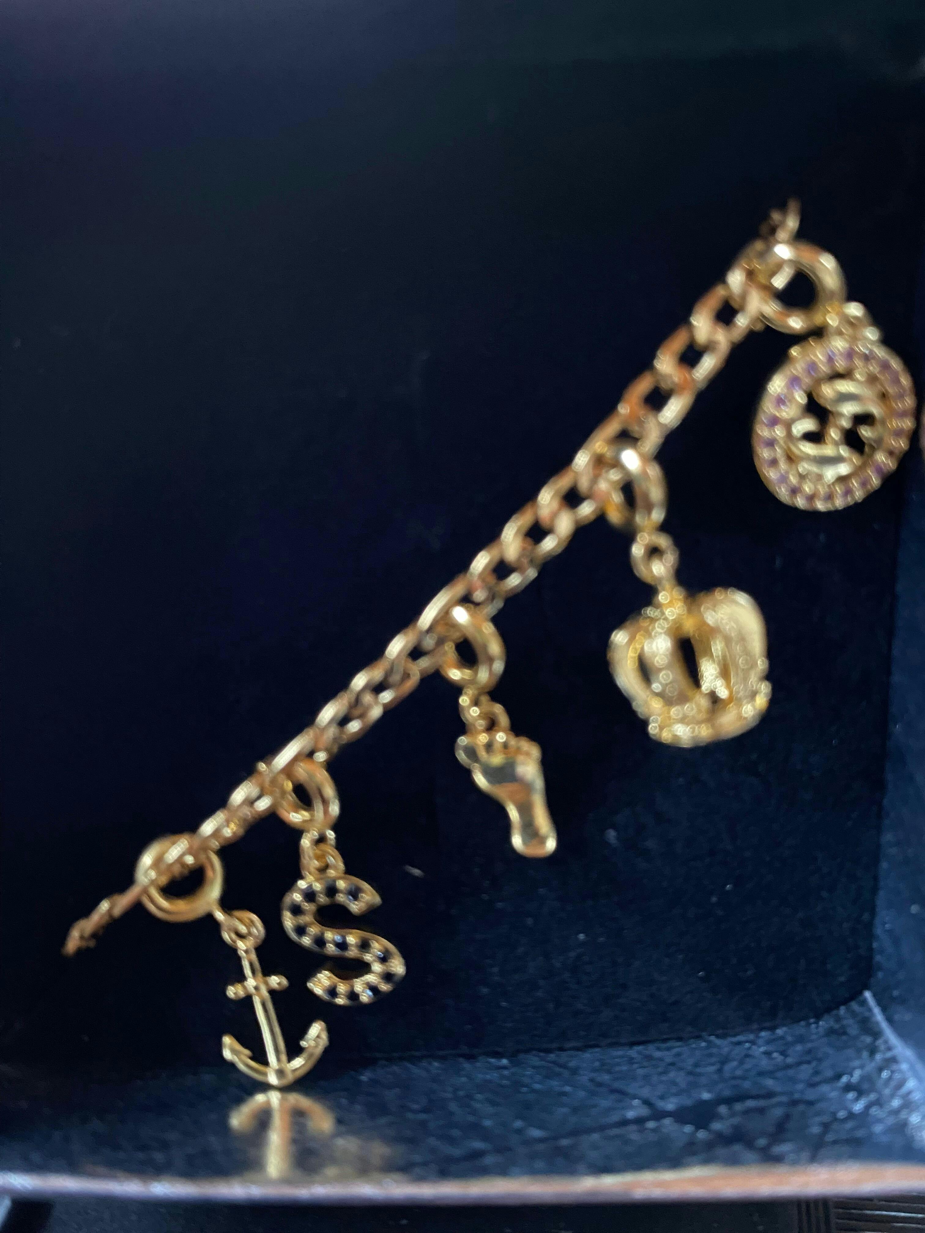 1 stk. Figaro Armbånd 18K Guldbelagt og flere fine charms købt til mit barnebarn, der bliver 9 år. Det er smukt, holdbart og ser så fint ud i gaveæske, så jeg glæder mig meget til at give hende det! Til den pris er det ikke jordens undergang, hvis hun skulle miste det. Godt køb - også til et barn!