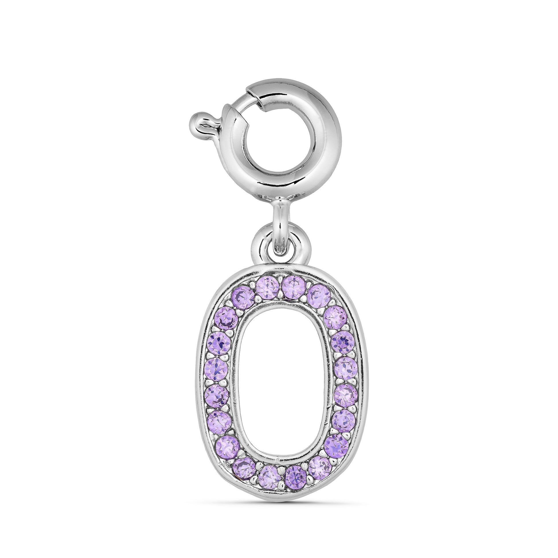 ANNEBRAUNER Number 0 Charm belagt med rhodium. Den er prydet med fine zirkoniaer i farven violet