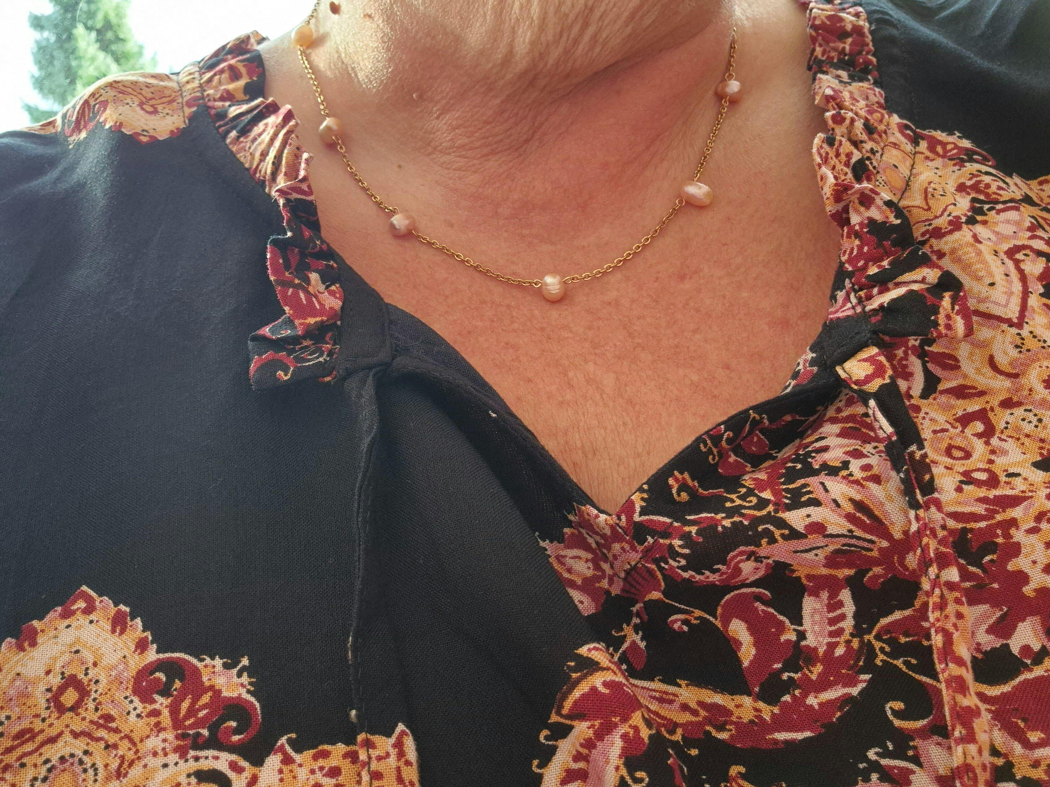 "Ferskvandsperlesmykker er helt unikke med et helt enestående udtryk, da ferskvandsperler er varierende i farven, og hver ferskvandsperle har helt sin egen uregelmæssige form".