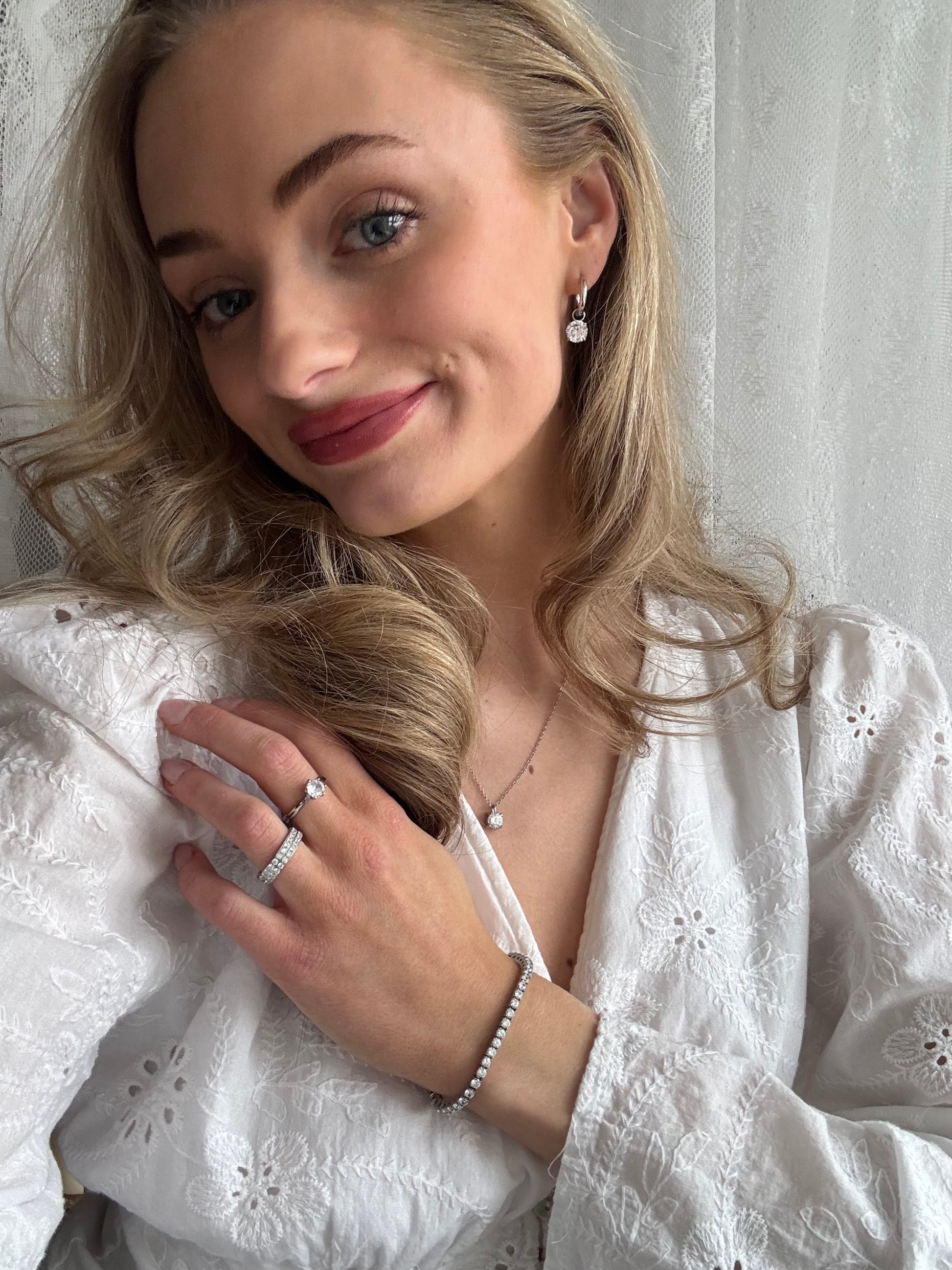 Smykker prydet med zirkoniaer er nøje udvalgte CZ-zirkoniaer, som giver et klart og strålende glimt. Zirkoniaerne er skabt til at reflektere lyset smukt, samtidig med at de er holdbare og nemme at bære hver dag.